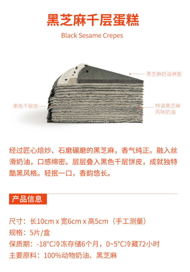 明治淡奶油定制-黑芝麻千层蛋糕(5片单独装)