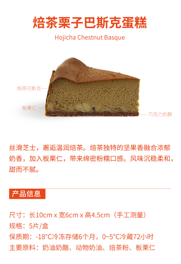 茶山拾谷-焙茶栗子巴斯克蛋糕(5片单独装)